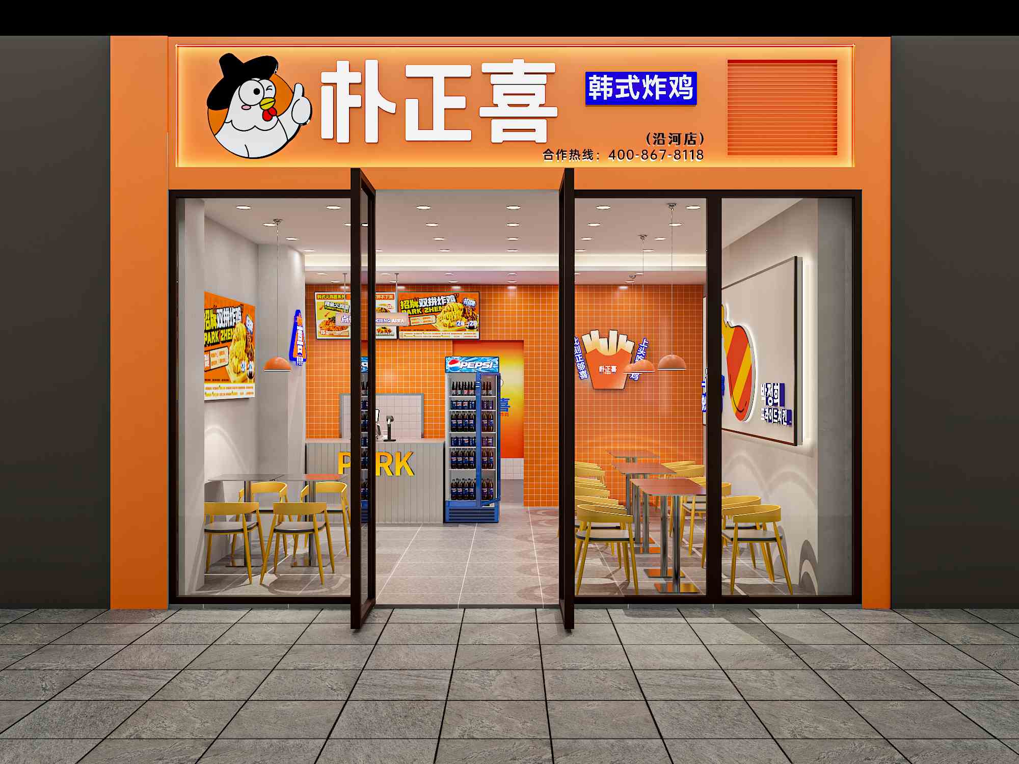 采用朴正喜最新的直营店装修方案,贴合产品元素,营造简洁干净韩式餐饮氛围。装修周期25-35天,总投资约8-10万元。